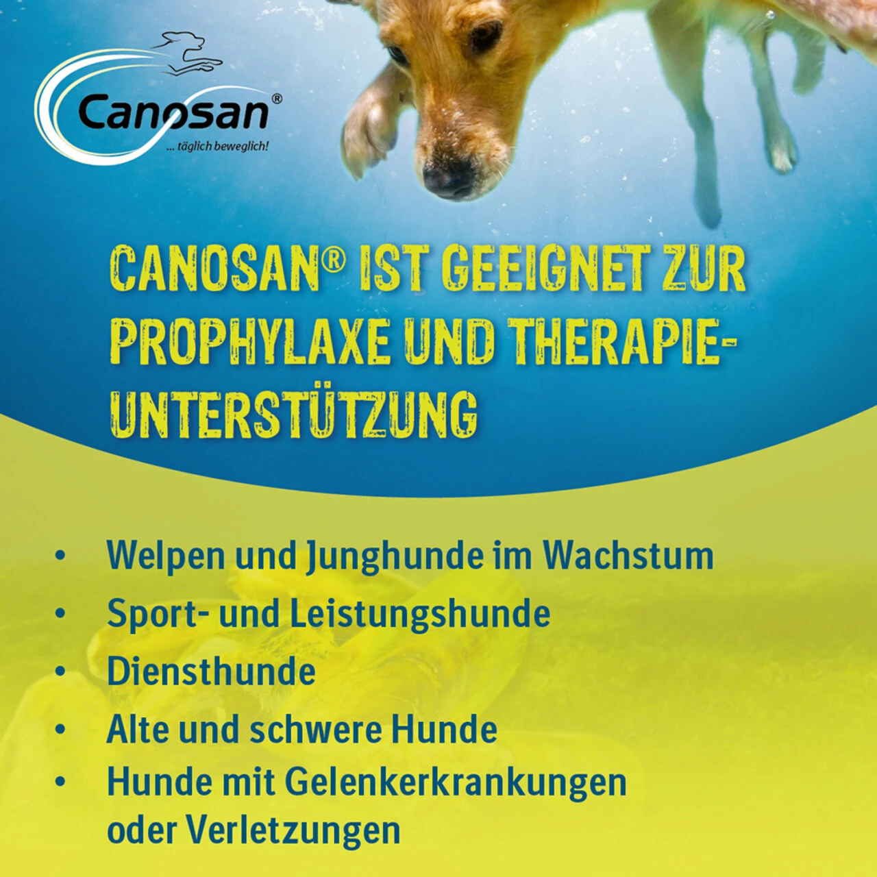 Canosan leistet einen wichtigen Beitrag zur Gelenkgesundheit des Hundes in jeder Lebensphase und jeder Beanspruchungssituation.