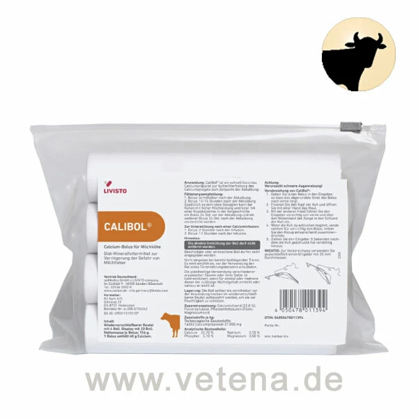 Diät-Mineralfuttermittel als Calcium-Bolus für Milchkühe zur Verringerung der Gefahr von Milchfieber und subklinischer Hypokalzämie.