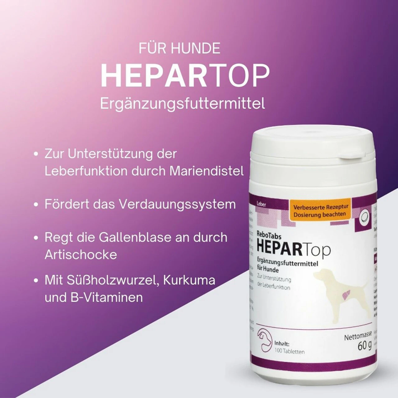 Produktvorteile von reboVet HEPARTop für Hunde: