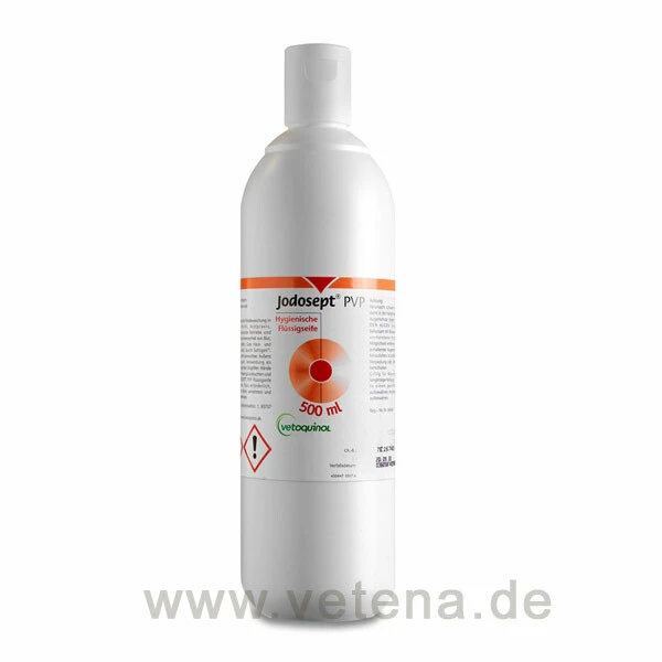 Jodosept von Vetoquinol ist eine jodhaltige, desinfizierende Flüssigseife zur Reinigung von Personal, Tieren und allen Bereichen von Klinik, Praxis und Stall.